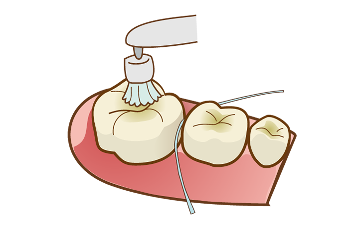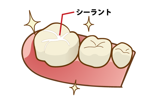 小児予防歯科は通常1~3ヶ月毎に来院していただき、歯面清掃、フロッシングをした後、「フッ素塗布」を行って歯質強化・虫歯の予防効果を高めるとともに再石灰化促進をはかります。 また、歯を削ることなく、奥歯などの咬む面の溝を歯科用プラスチックでシールドして虫歯を予防する「シーラント」も行っております。 その他にも、お子様の口腔環境などを拝見させていただき、唾液・プラークなどのPH検査もさせていただく場合もございます。