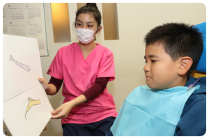 一生涯、健康な歯で生活を送るためには、こどもの頃から歯を大切にしていくことが重要です。 そのためにもお子様に「歯医者は痛くて怖いところ」というイメージを持たれないためにも、まずは練習から始め、 楽しく通っていただけるようお子様・親御様をサポートしながら進めます。